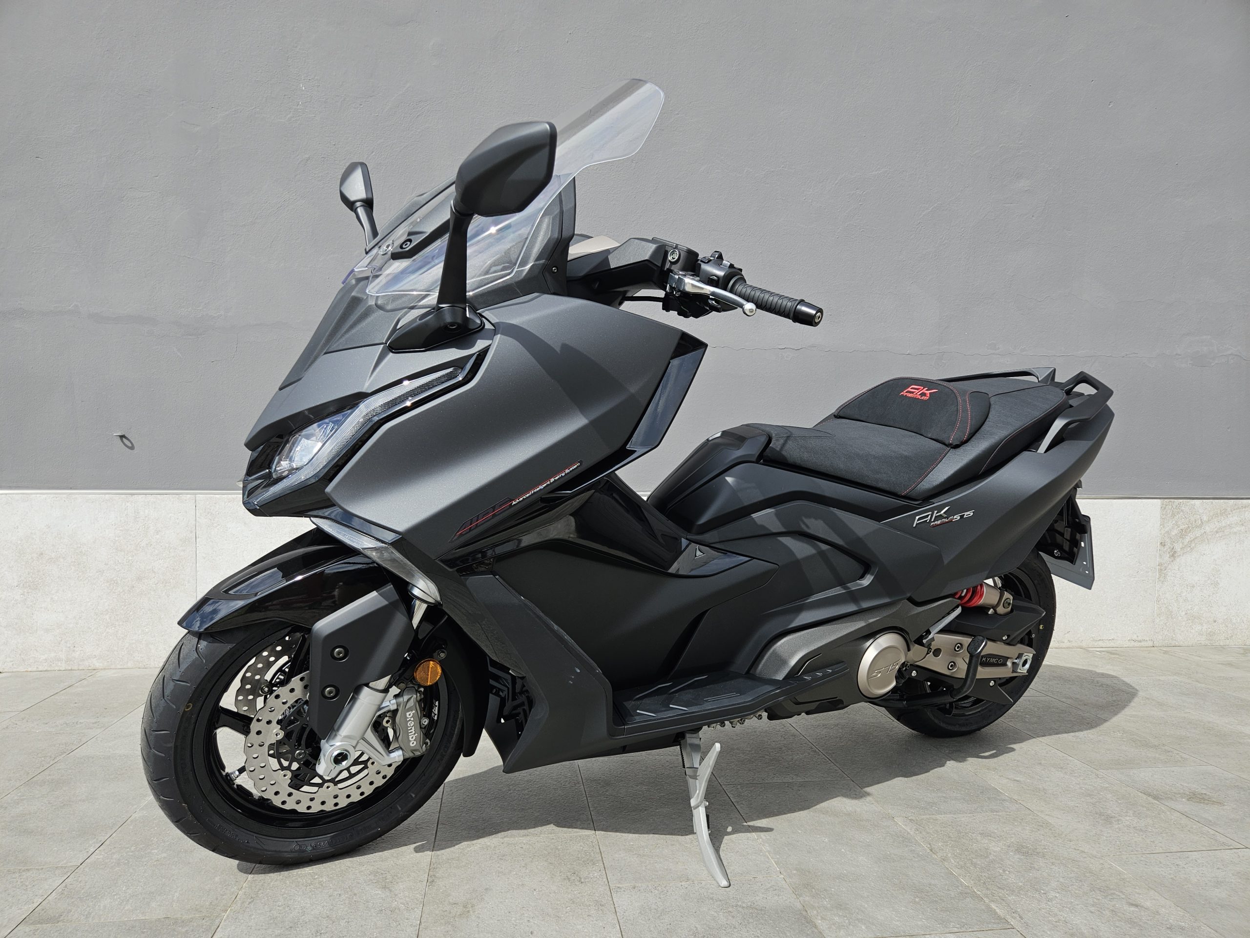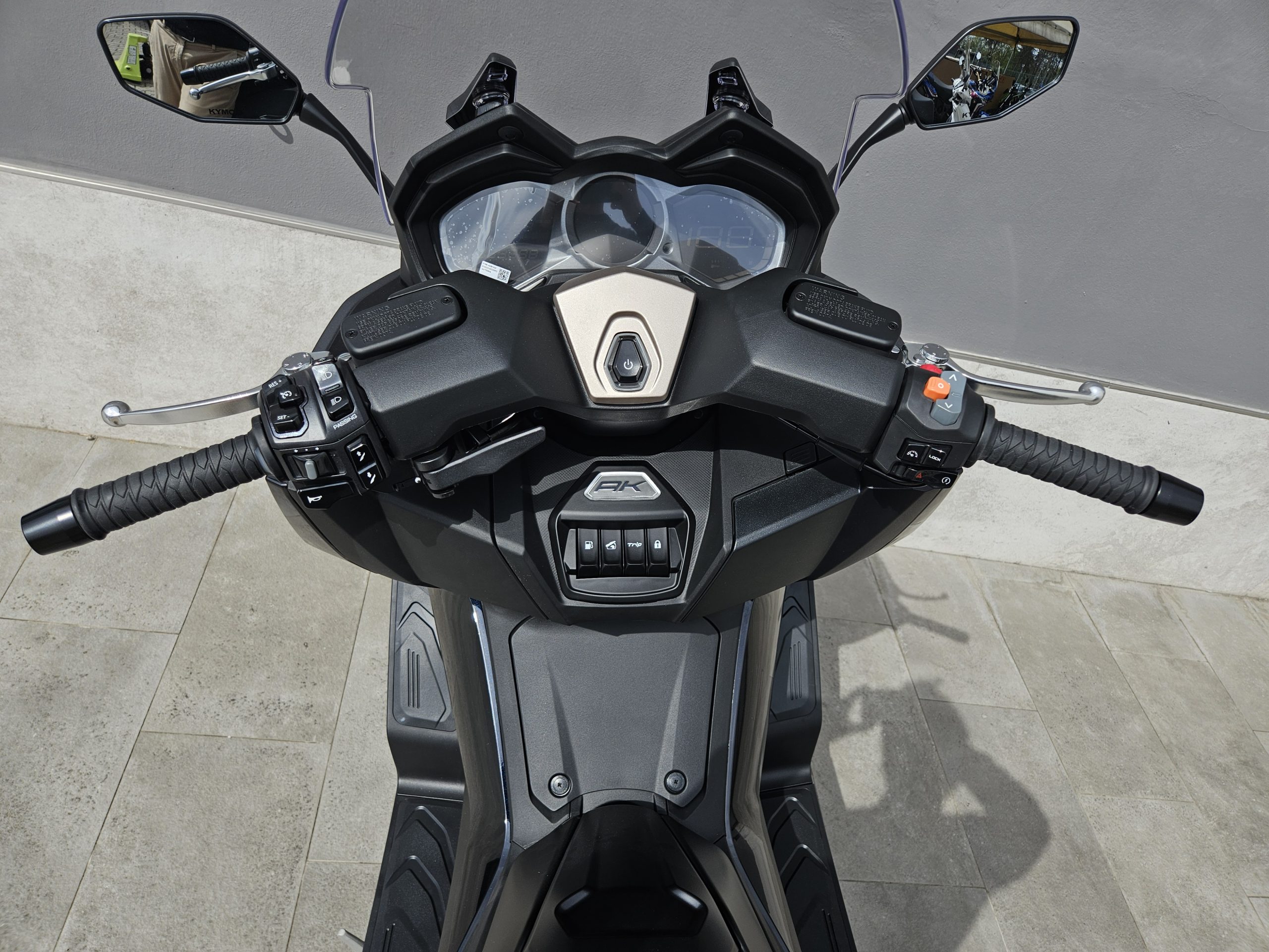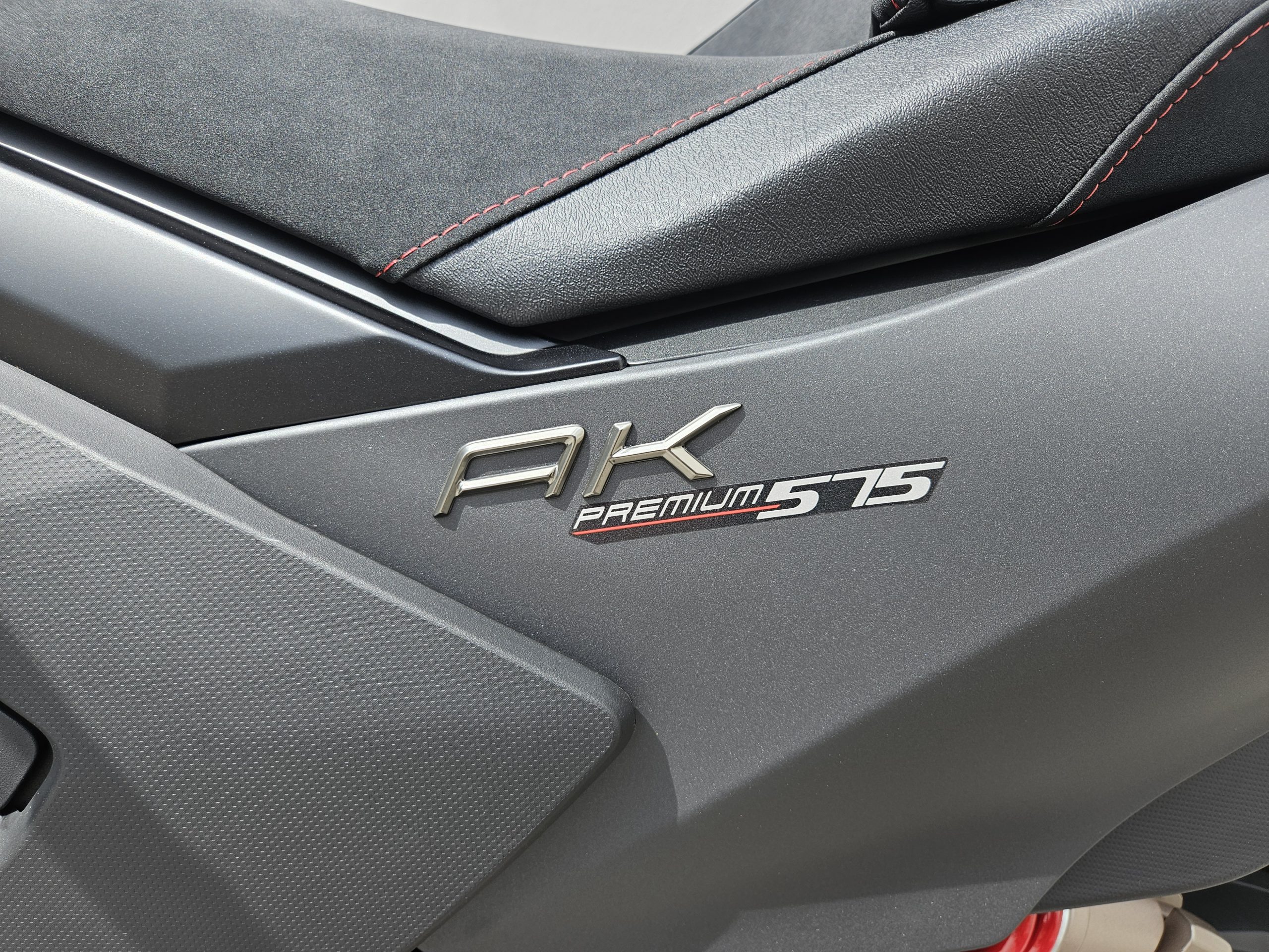 Il nuovo AK 575 Premium alza l’asticella nel segmento dei maxi scooter sportivi, confermando l’ottimo livello delle finiture, lo stile aggressivo ma anche la vocazione più turistica, grazie allo scudo ampio e protettivo e al parabrezza regolabile elettronicamente.