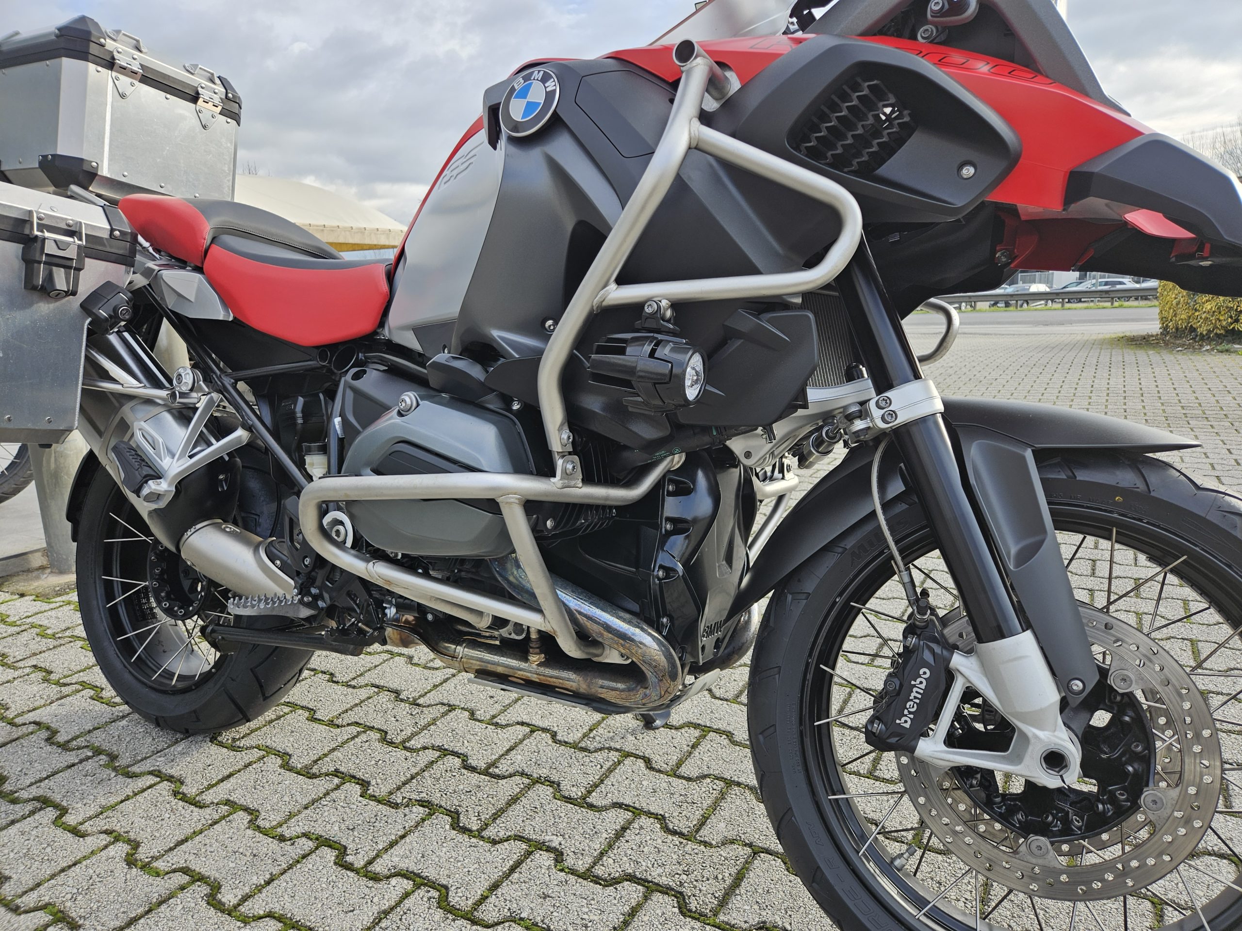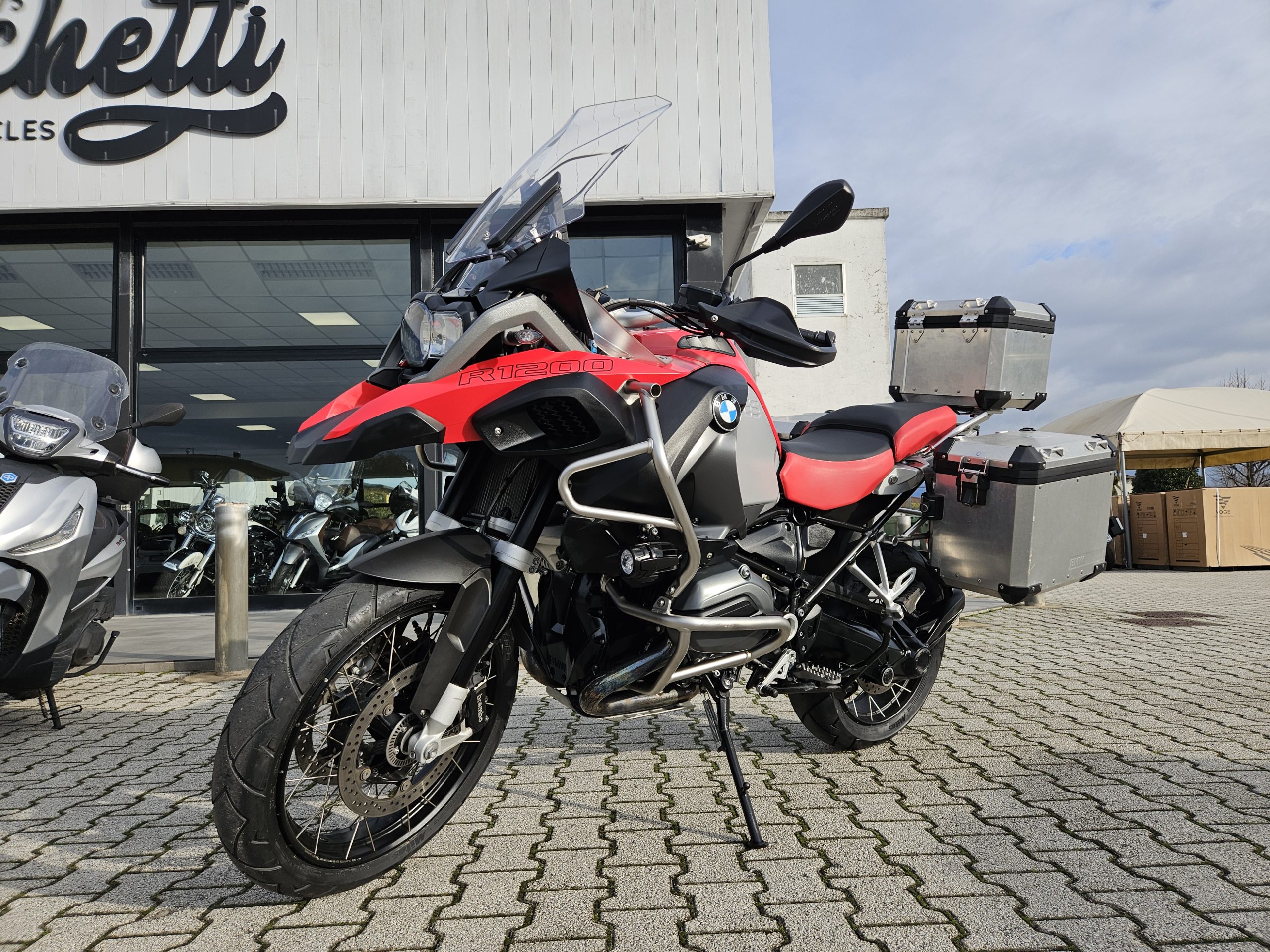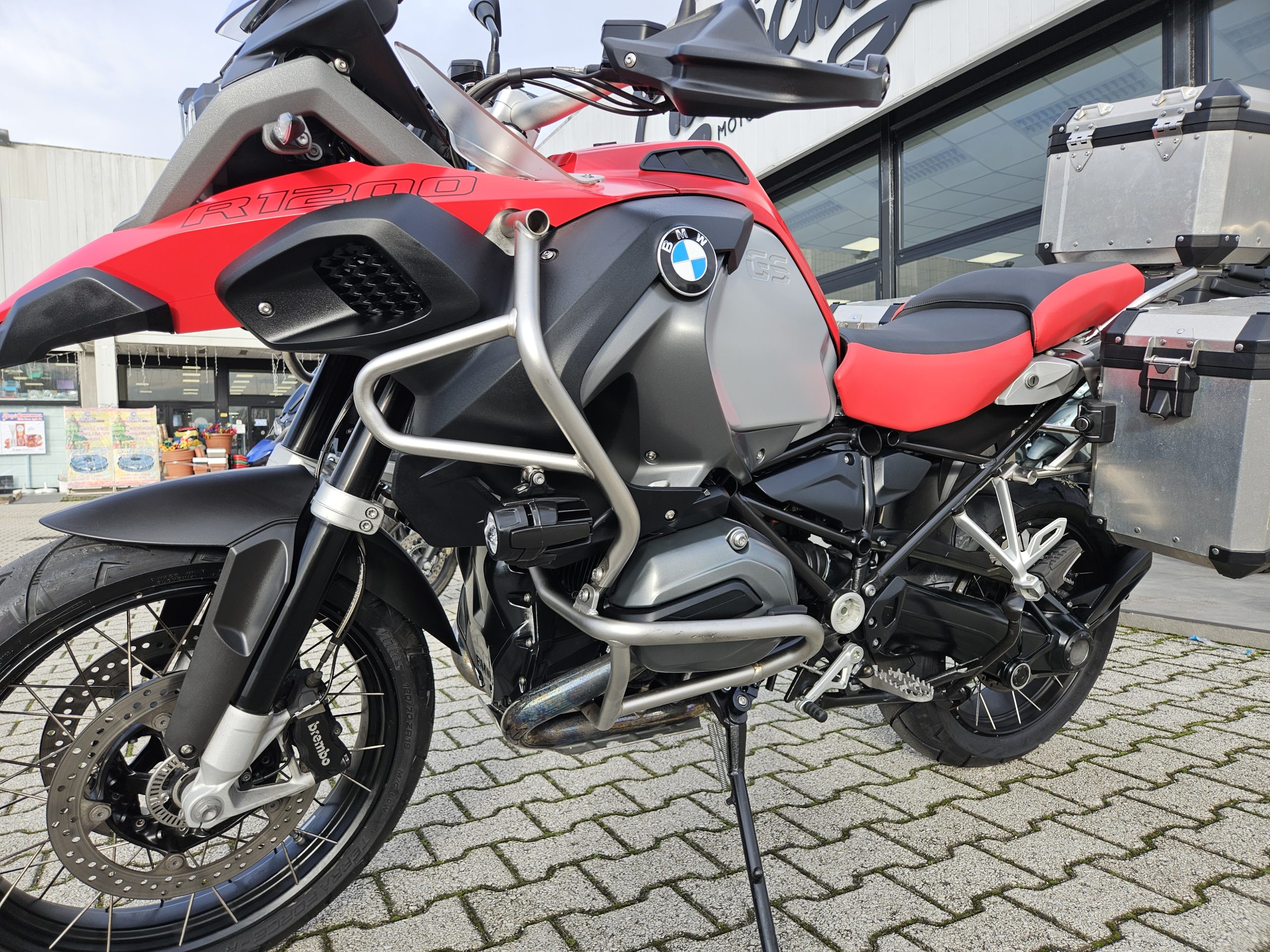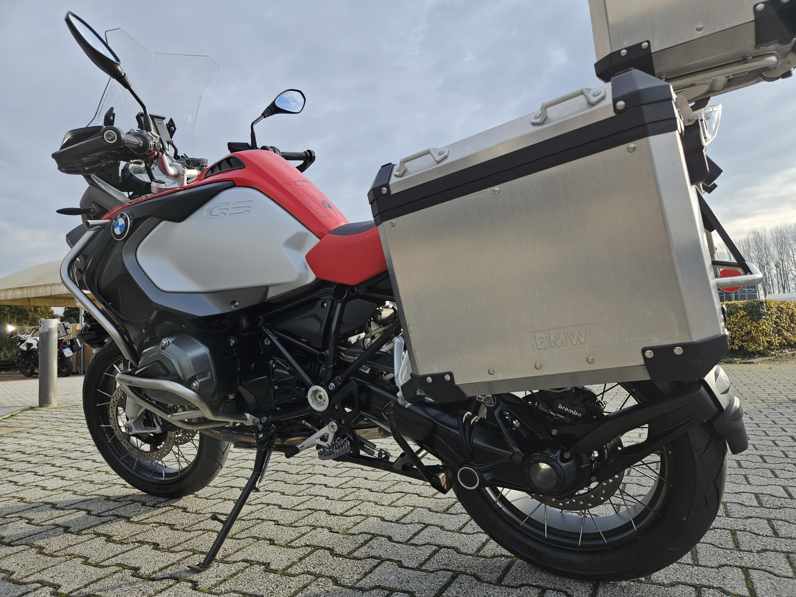 Cupolino, paramani, cavalletto centrale, paramotore tubolare in alluminio completo, faretti supplementari, supporto navigatore, tris di valigie originali BMW in alluminio.