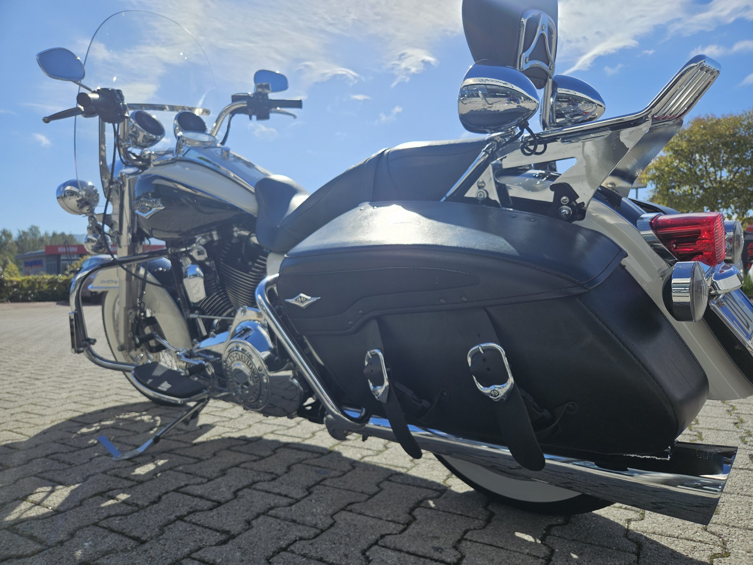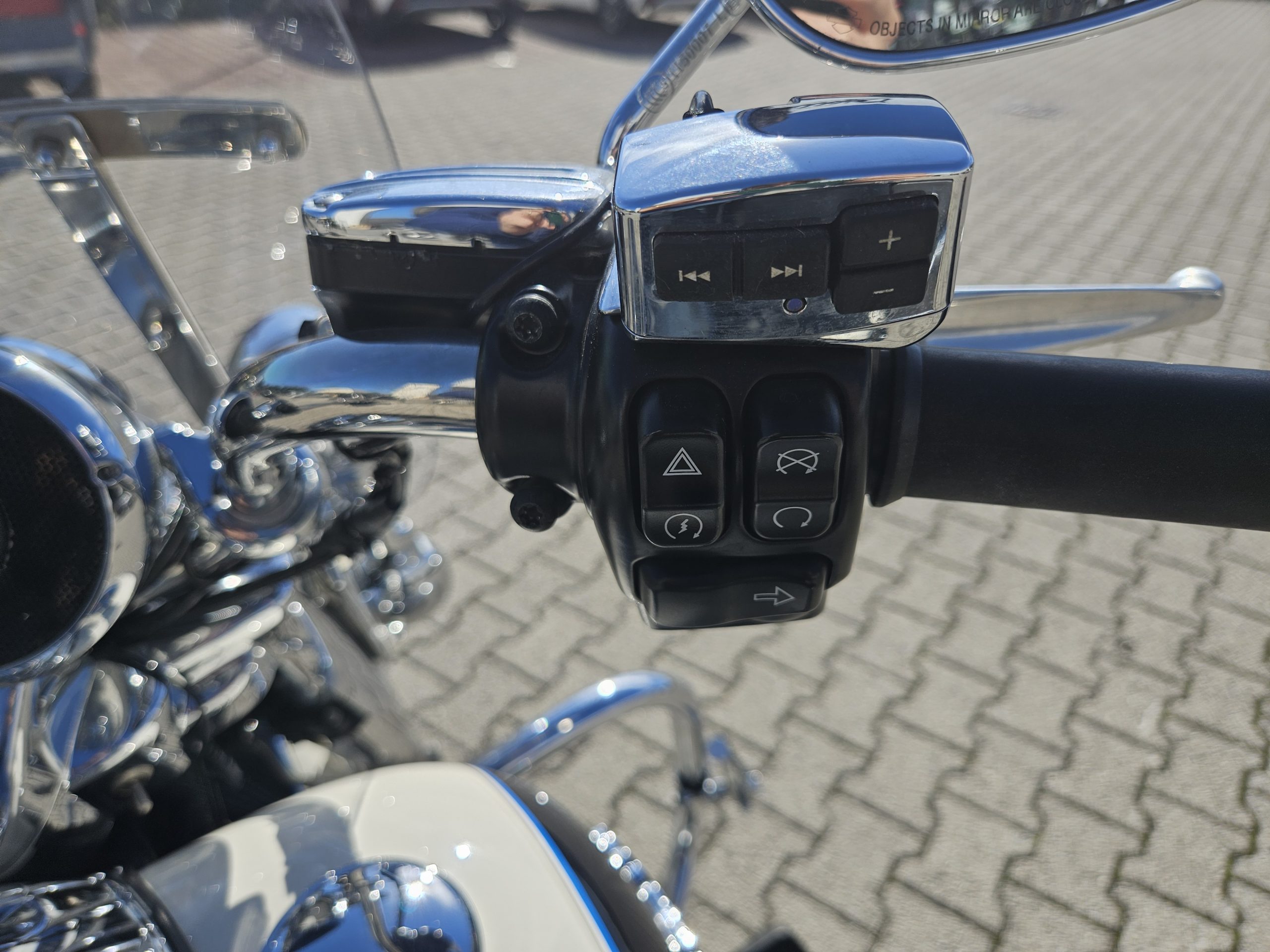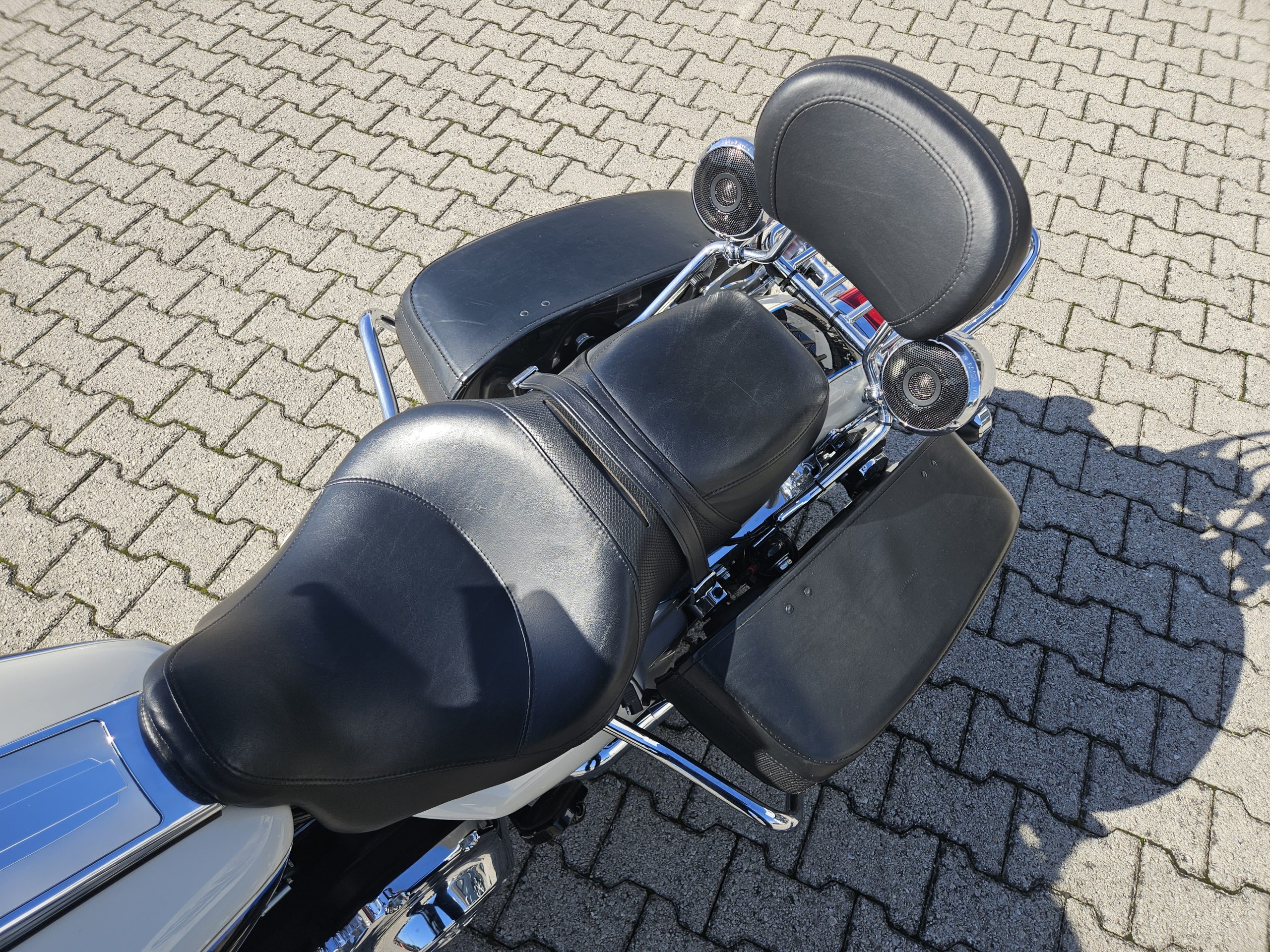 Accessoriata con pedane avanzate originali, valigie originali Harley in pelle rigida, cupolino maggiorato originale, portapacchi in alluminio con spalliera in pelle originale, impianto stereo con casse integrate anteriori e posteriori, scarichi Vance and Hines omologati.