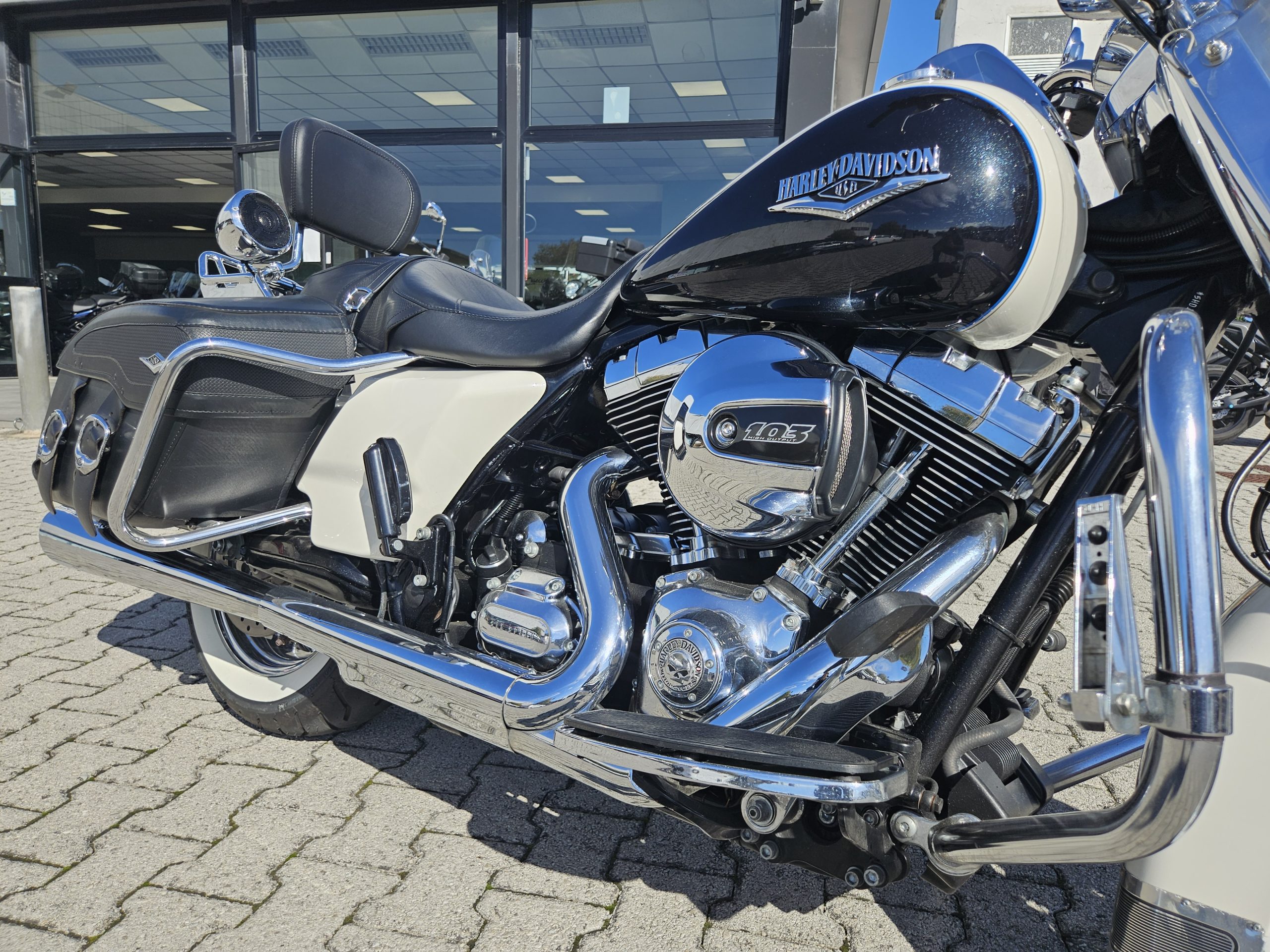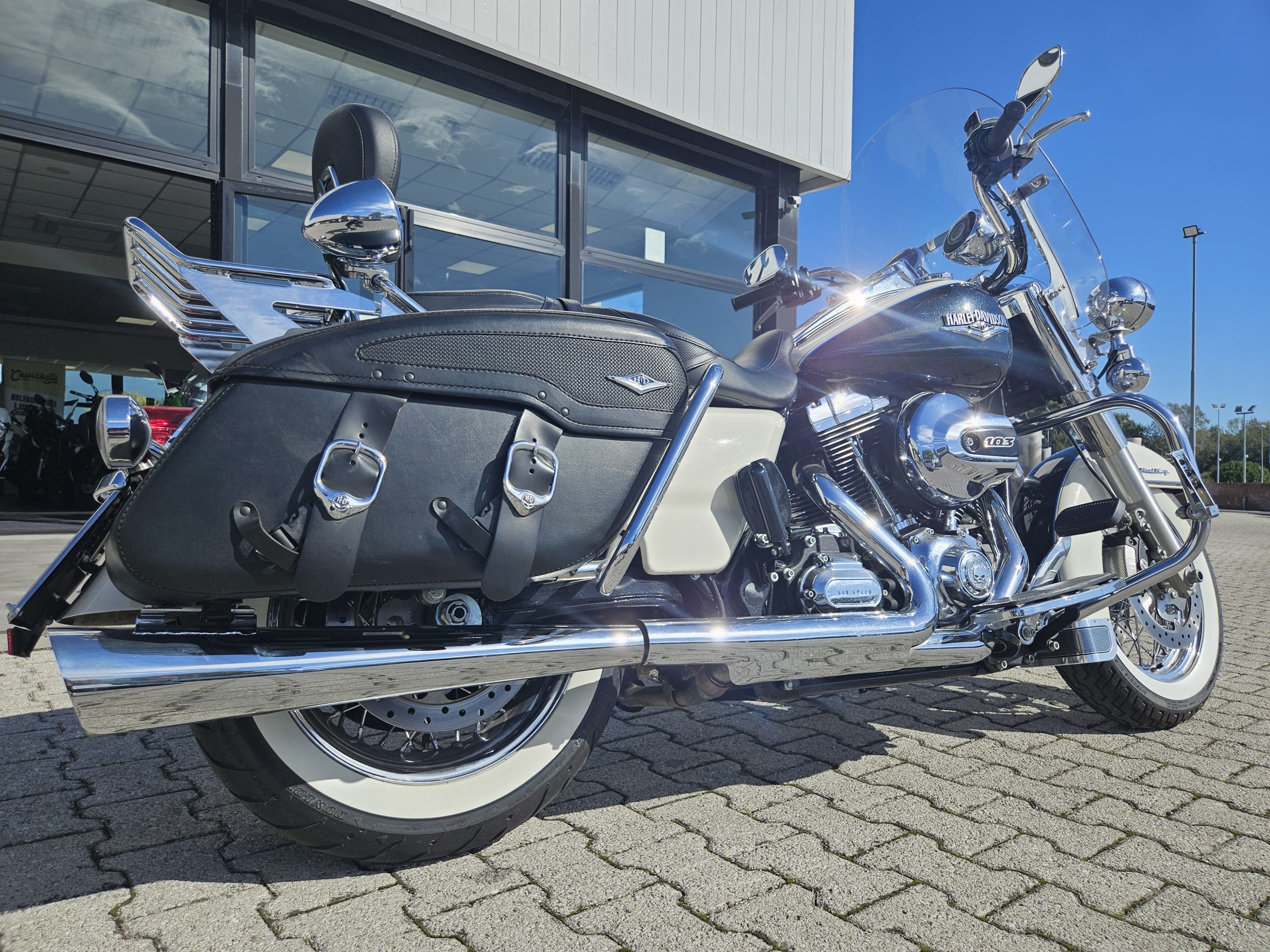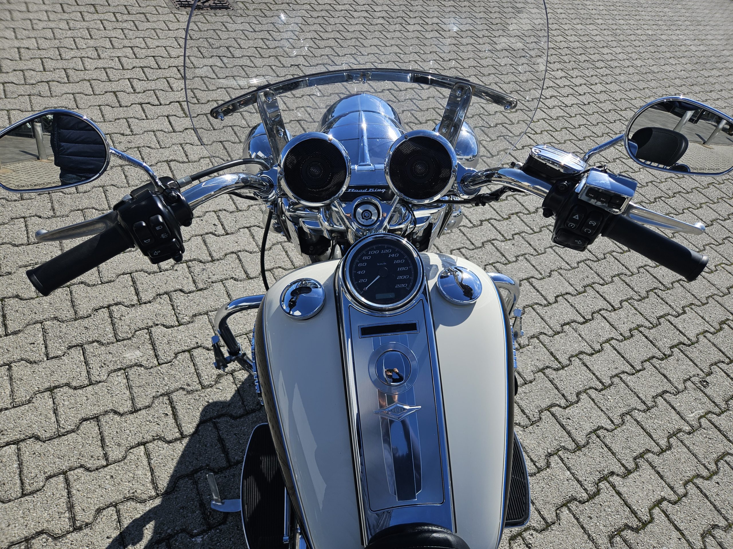 Accessoriata con pedane avanzate originali, valigie originali Harley in pelle rigida, cupolino maggiorato originale, portapacchi in alluminio con spalliera in pelle originale, impianto stereo con casse integrate anteriori e posteriori, scarichi Vance and Hines omologati.