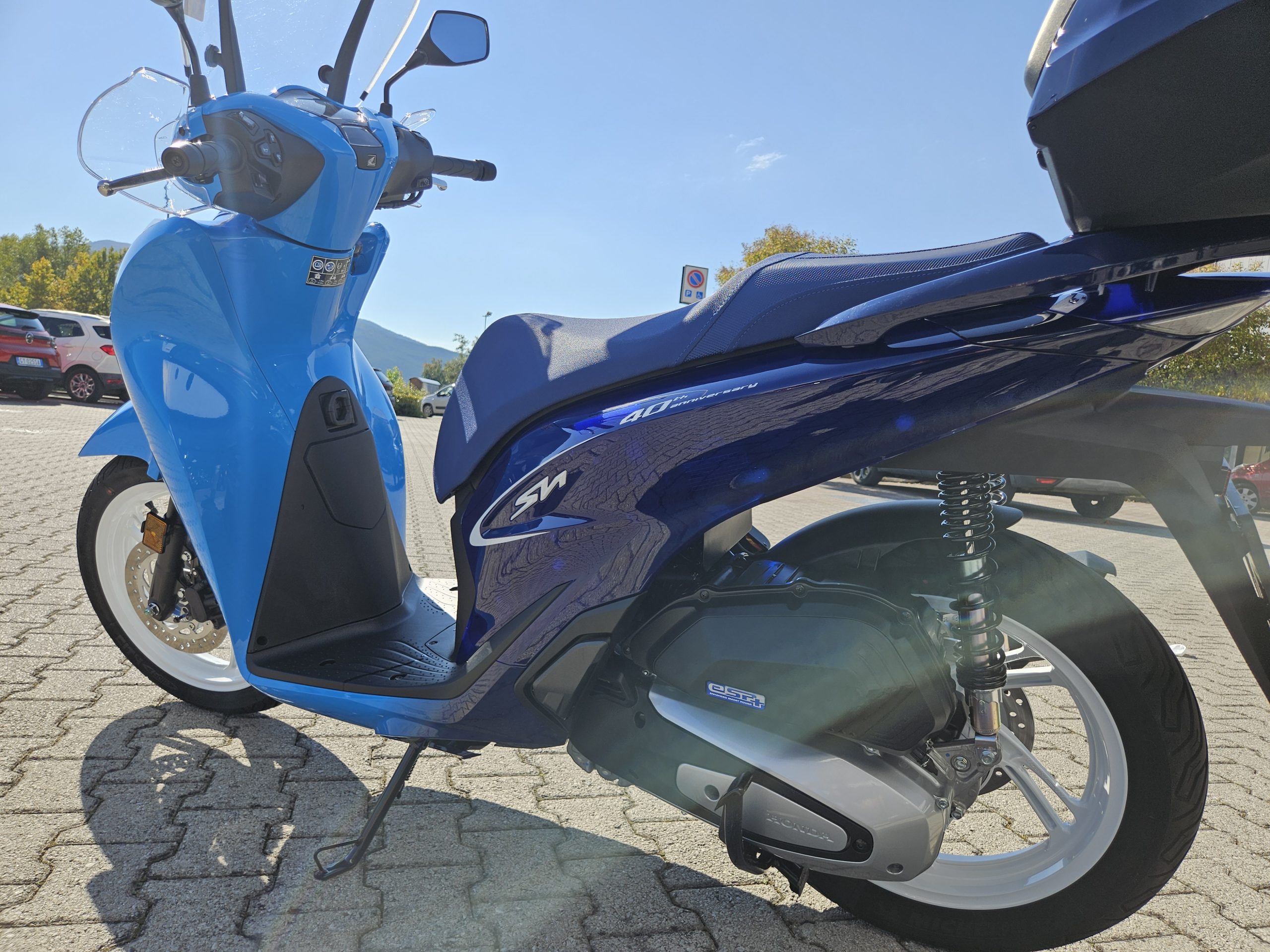 Accessoriato con baule posteriore in tinta originale Honda e parabrezza maggiorato.