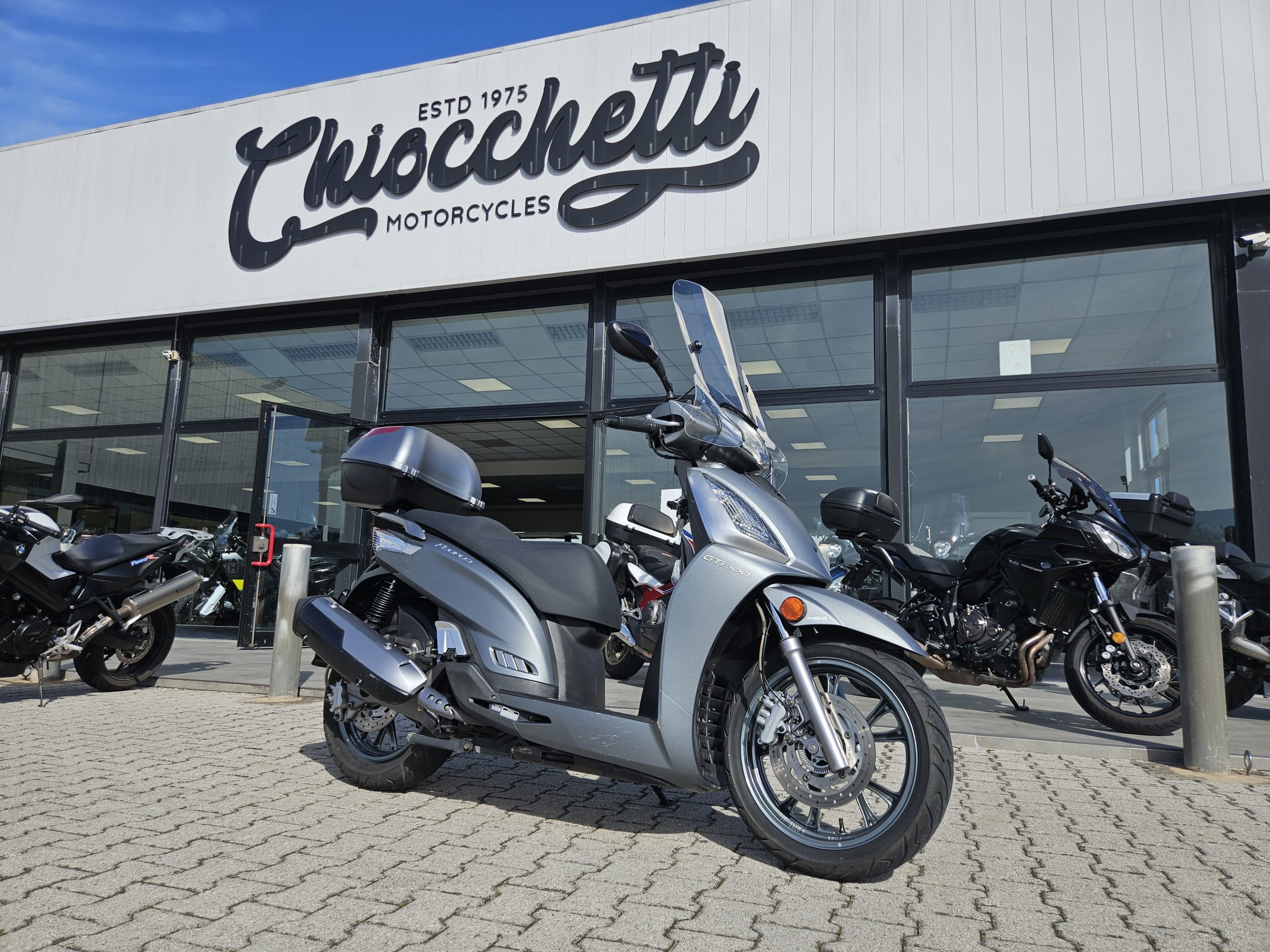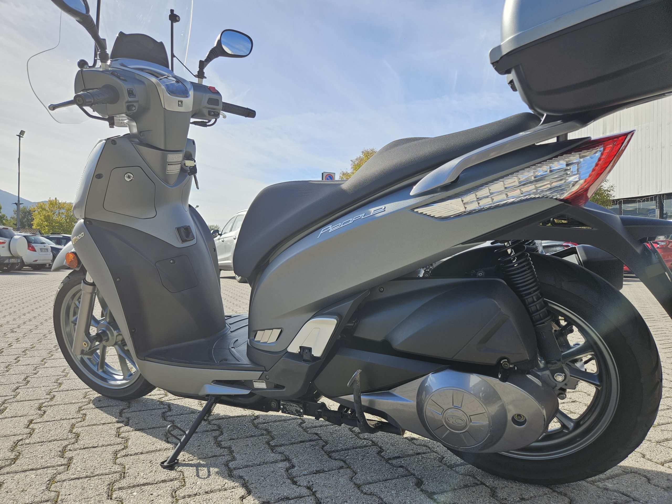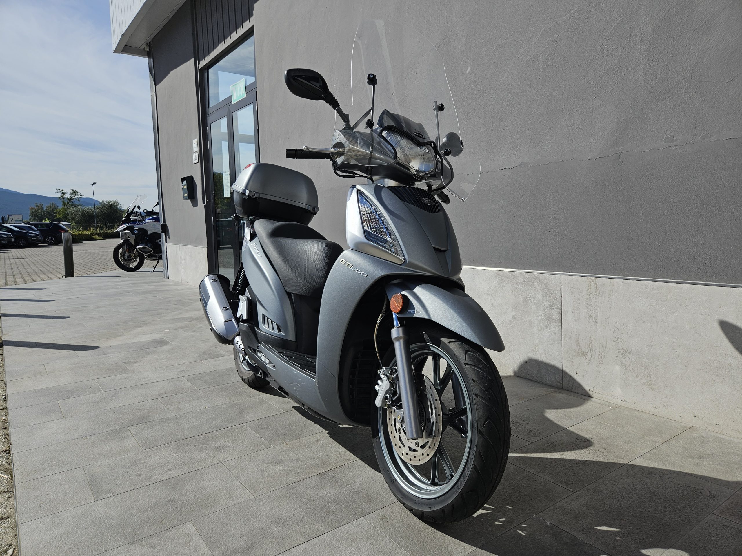 Accessoriato con parabrezza maggiorato e baule in tinta originale Kymco.