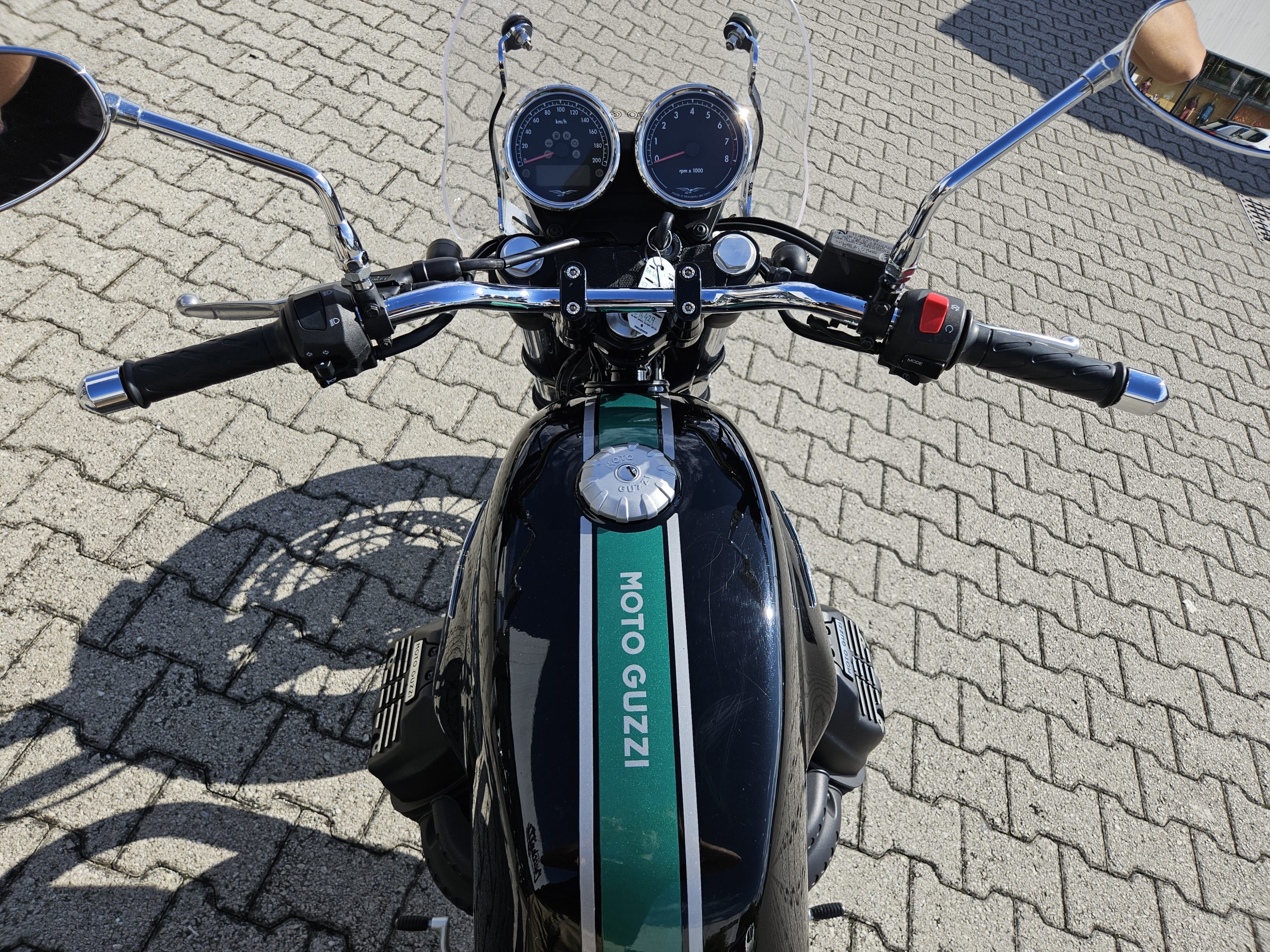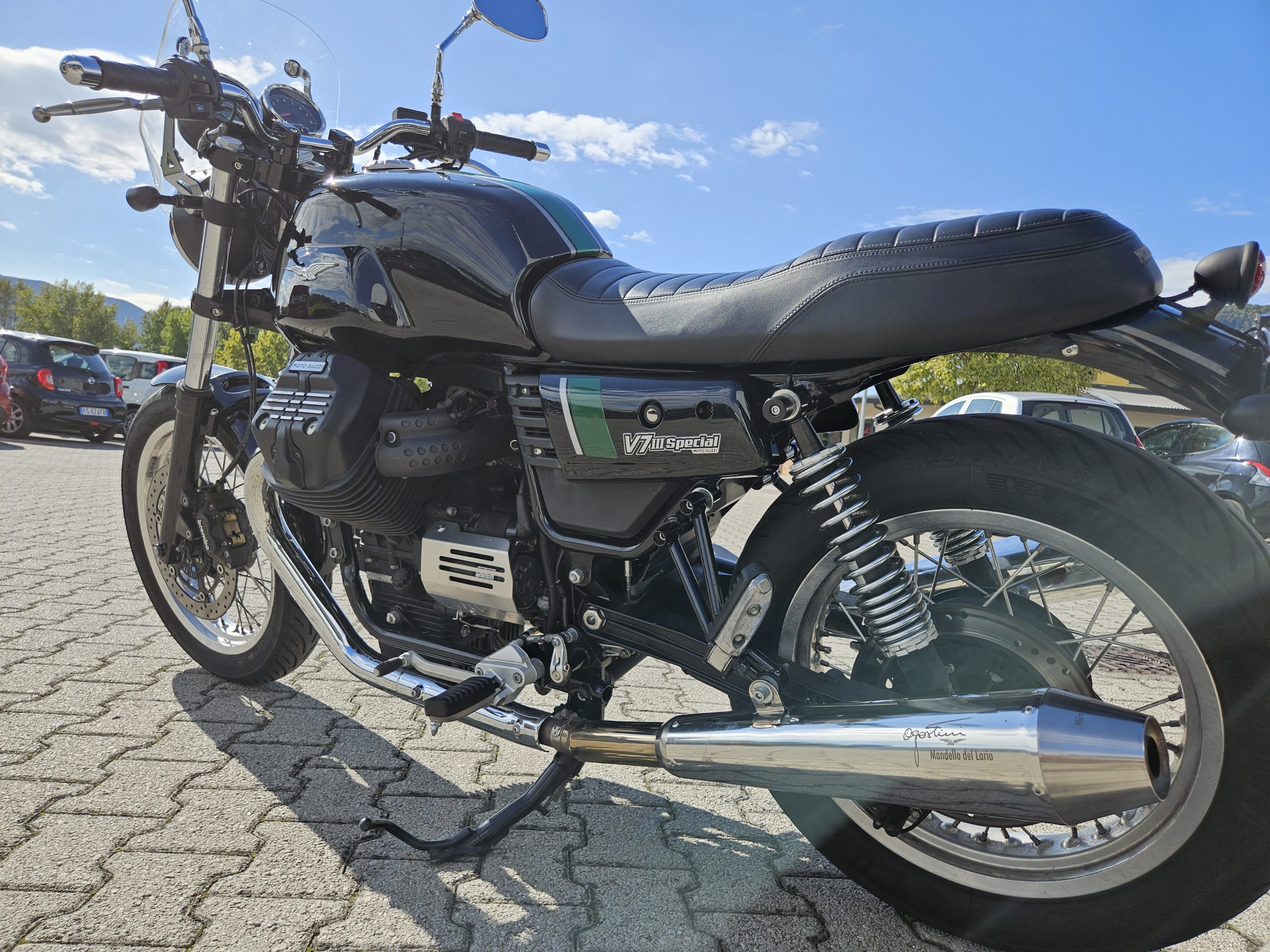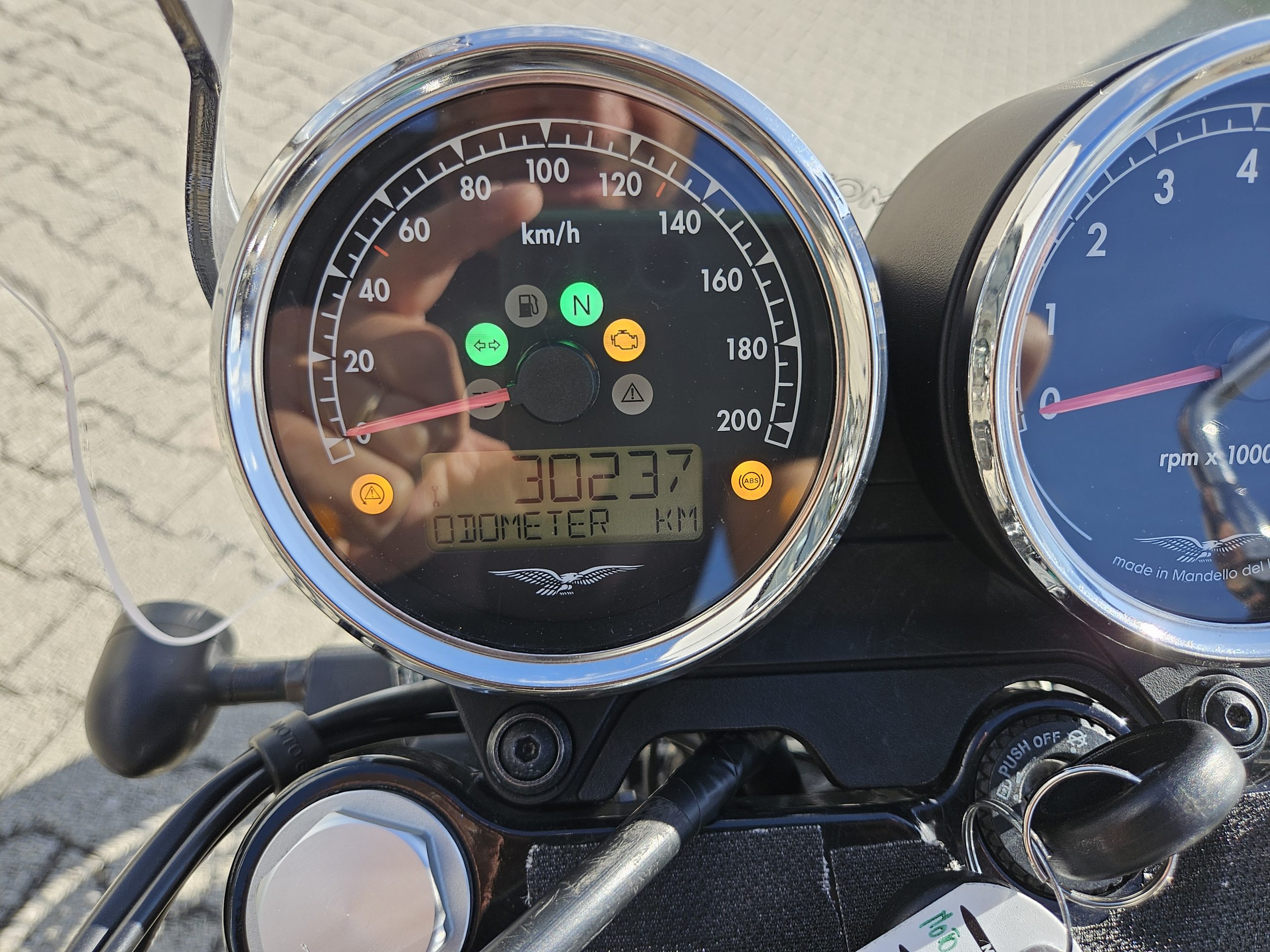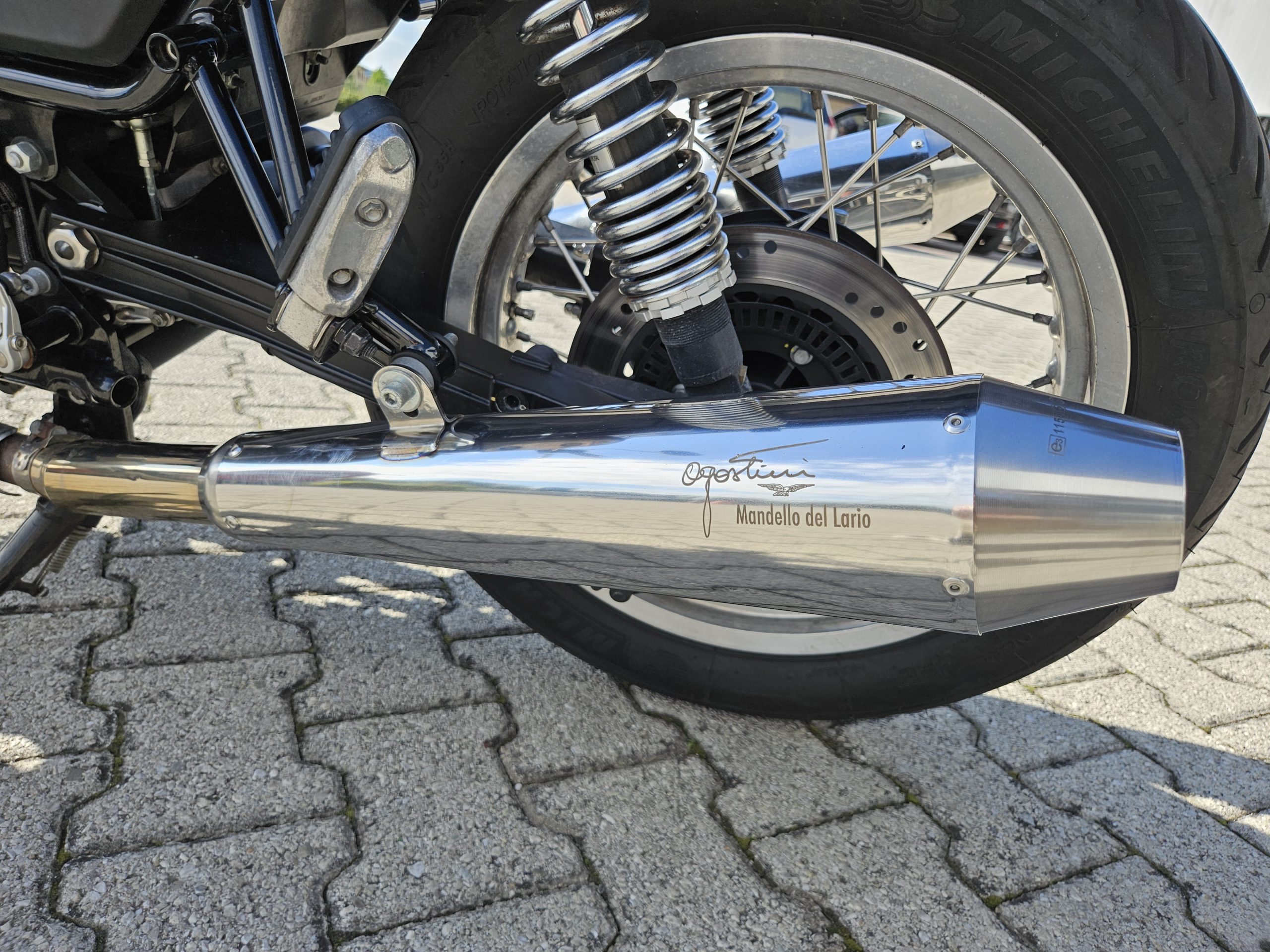 Accessoriata con cupolino anteriore, kit scarichi cromati Agostini per Moto Guzzi.