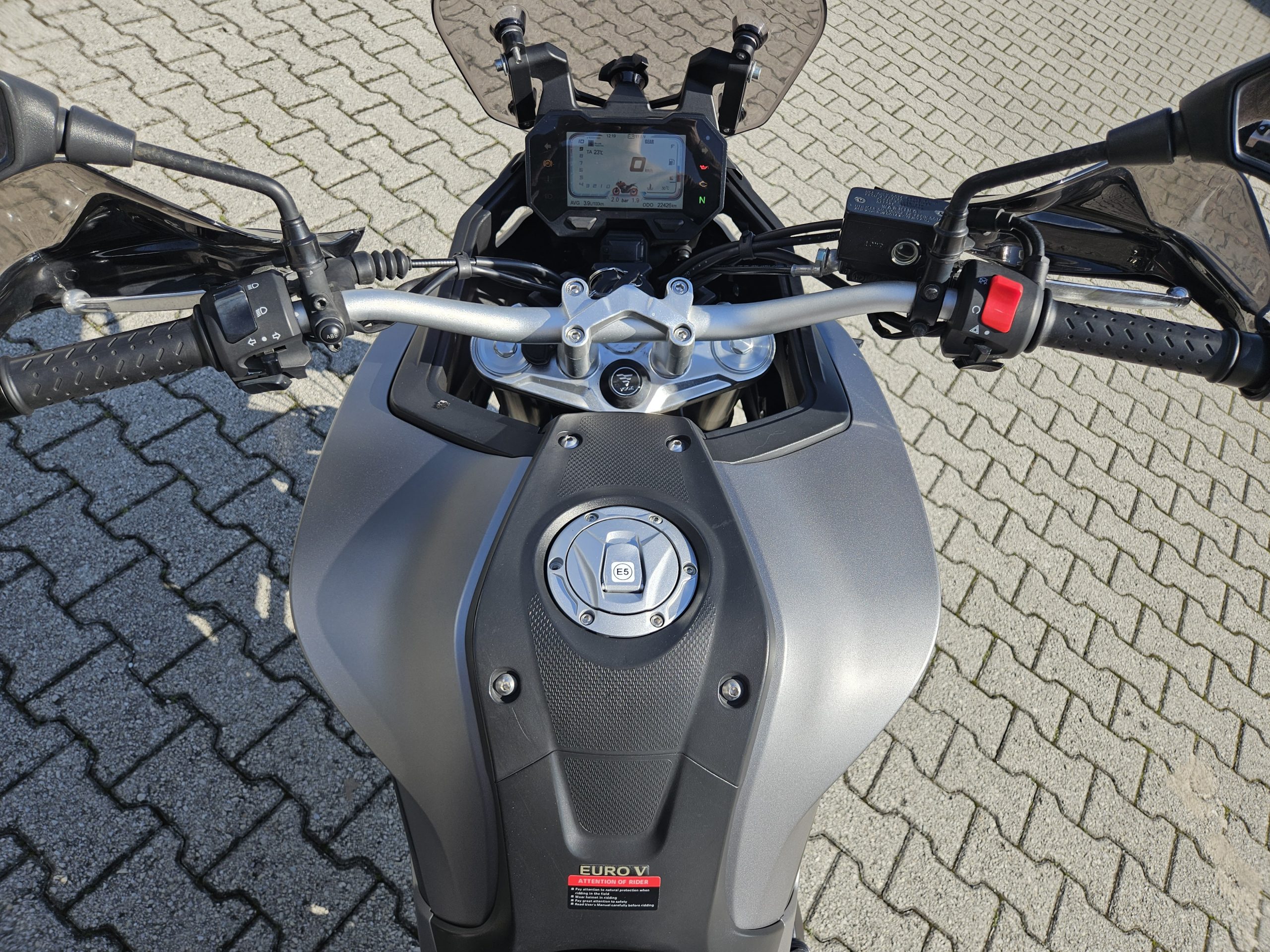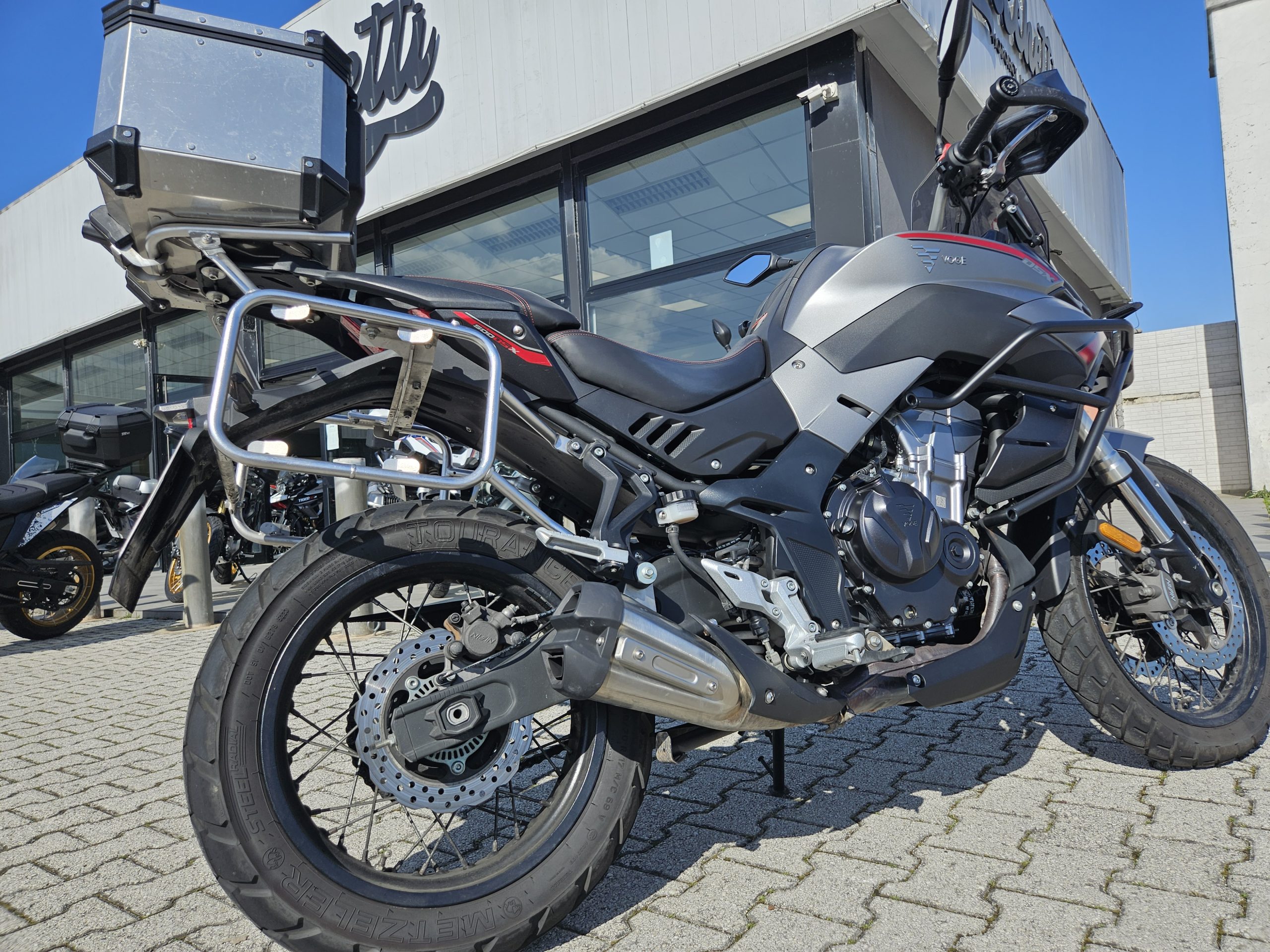 Accessoriata con cupolino fumé, paramani, paramotore tubolare in alluminio, baule posteriore in alluminio, presenti anche le valigie laterali in alluminio.